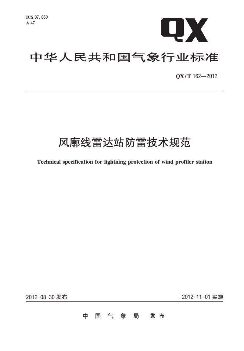 QXT 162-2012 风廓线雷达站防雷技术规范.pdf