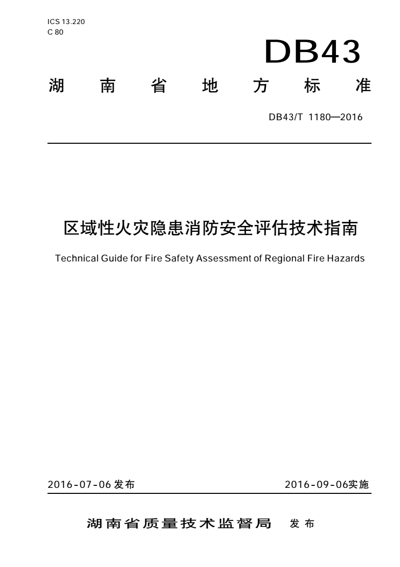 DB43/T 1180-2016 区域性火灾隐患消防安全评估技术指南 |