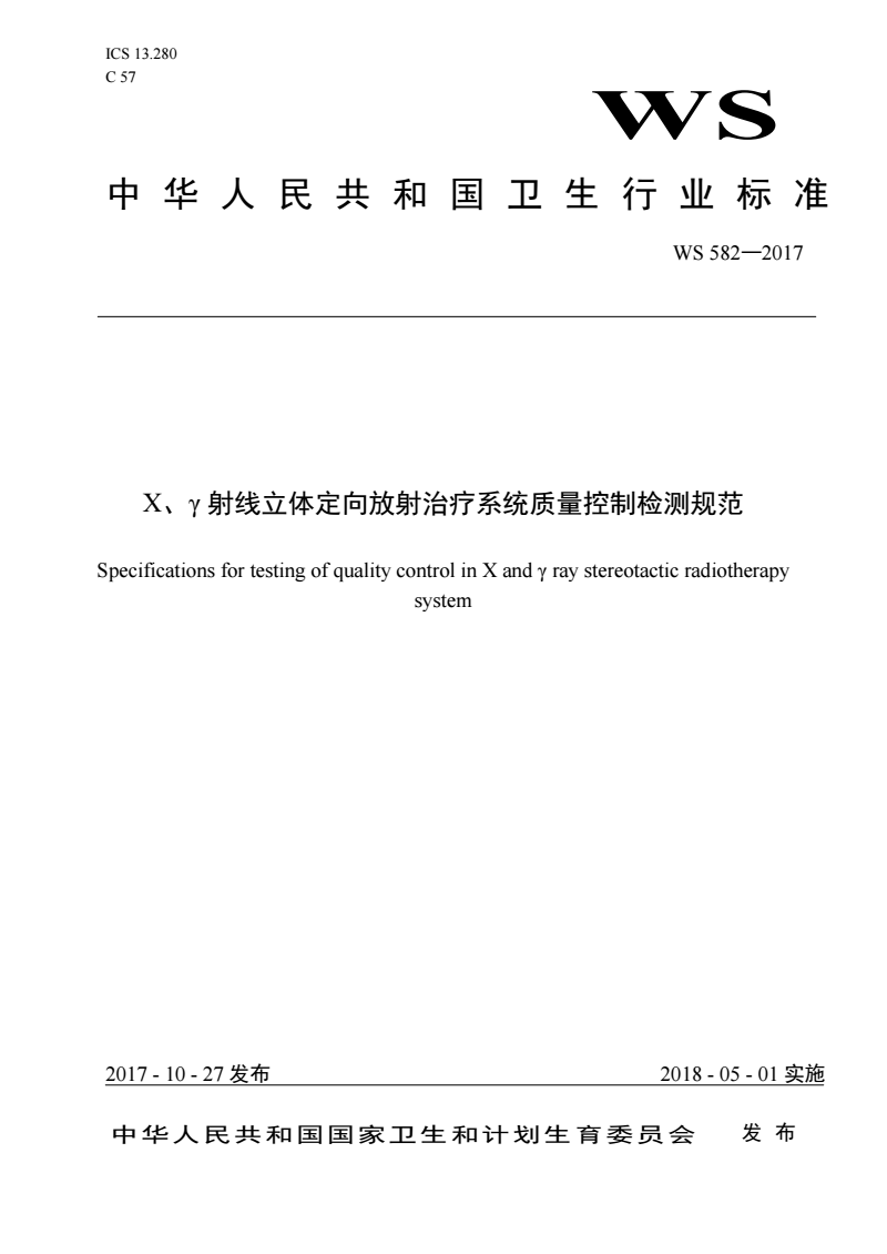 标准名称:X、r射线立体定向放射治疗系统质量控制检测规范