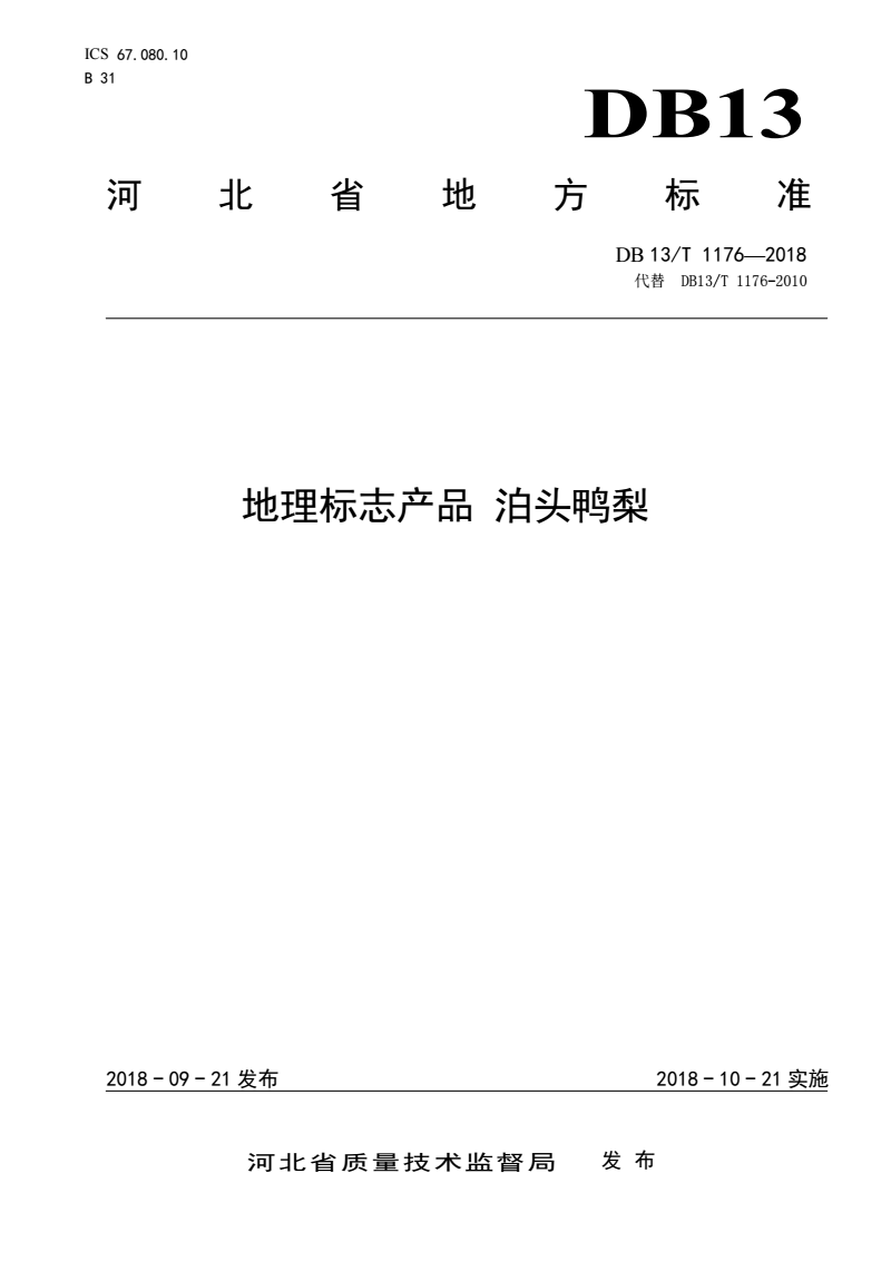DB13/T 1176-2018 地理标志产品 泊头鸭梨 |