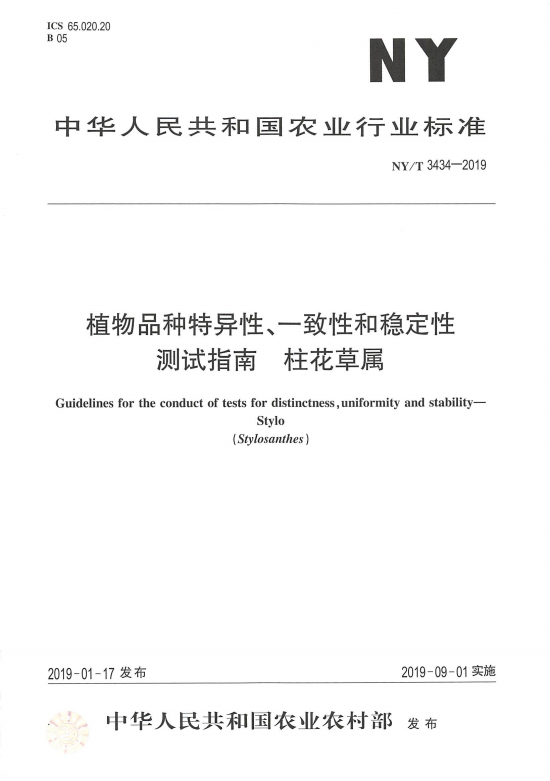 英文名称:Guidelines for the conduct of tests for distinctness,uniformity and stability—Stylo