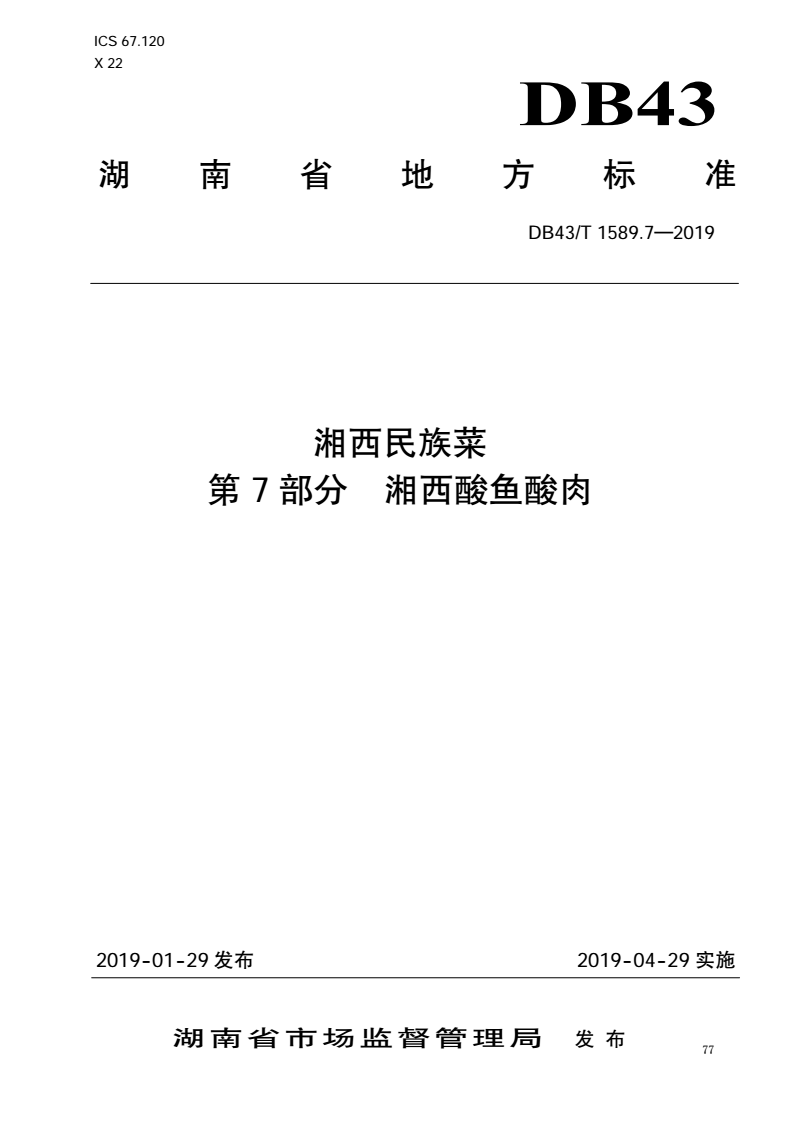 DB43/T 1589.7-2019 湘西民族菜 第7部分:湘西酸鱼酸肉 |