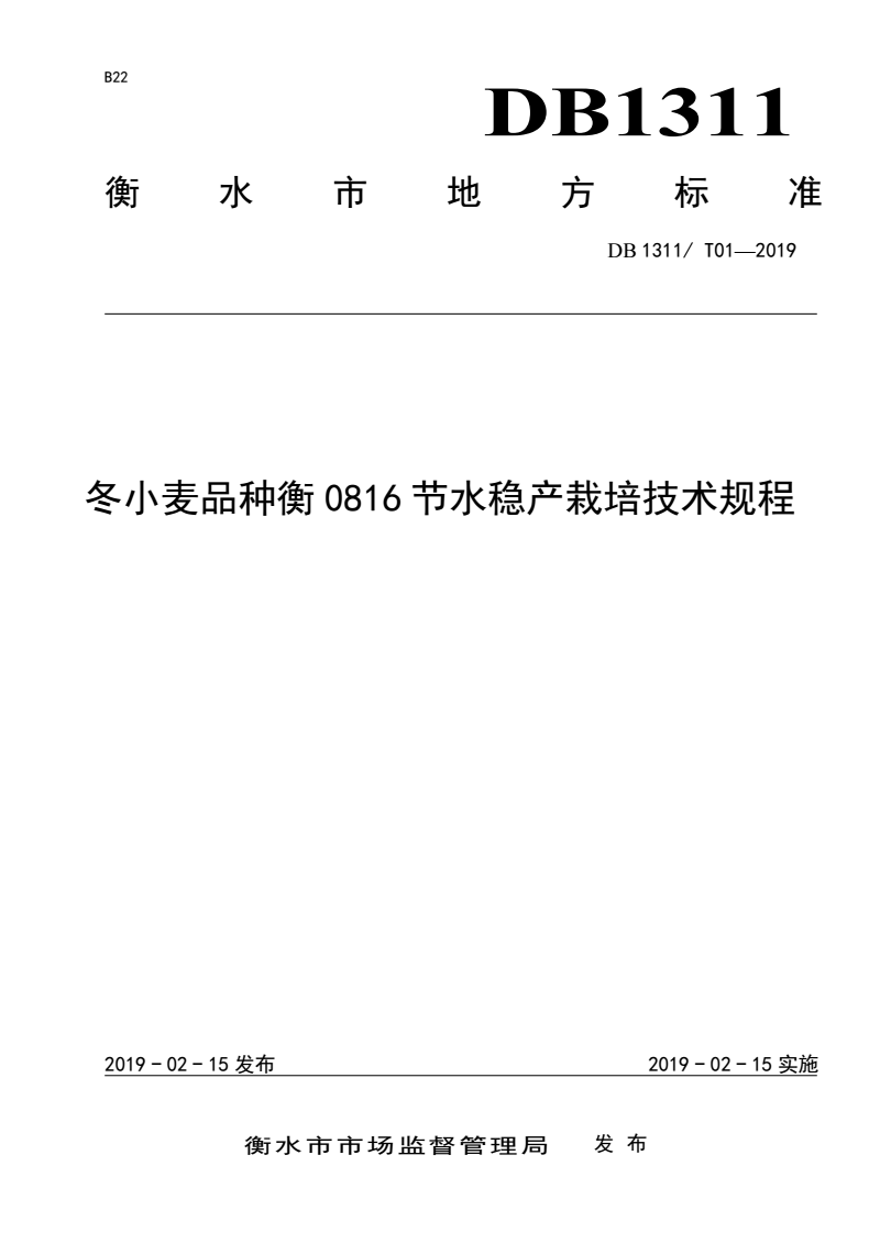 DB1311/T 01-2019 冬小麦品种衡0816节水稳产栽培技术规程 |