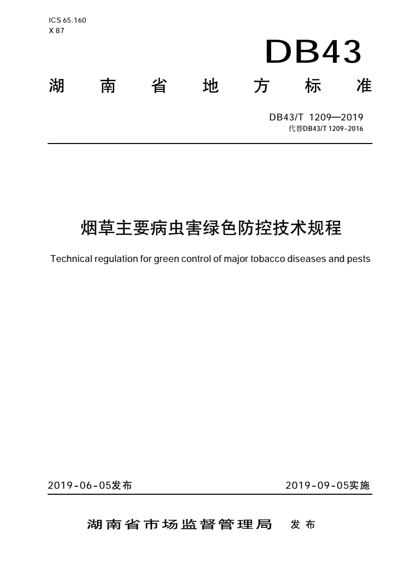 DB43/T 1209-2019 烟草主要病虫害绿色防控技术规程 |
