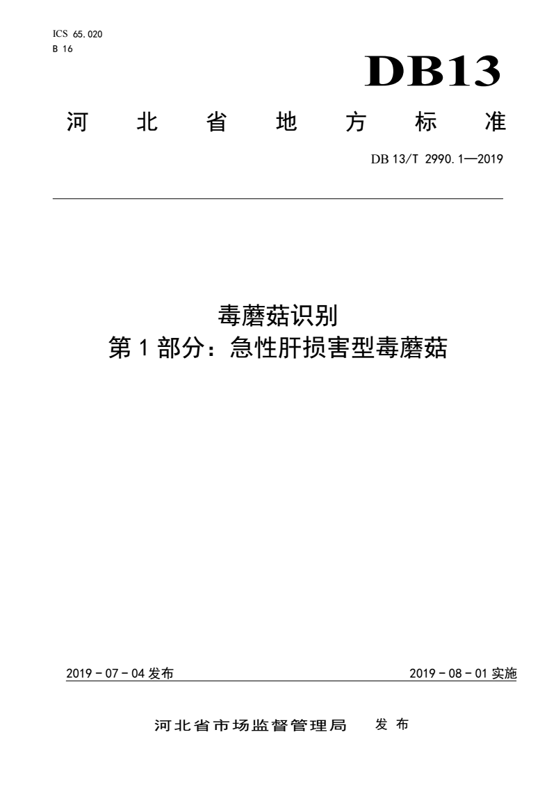 DB13/T 2990.1-2019 毒蘑菇识别 第1部分:急性肝损害型毒蘑菇 |