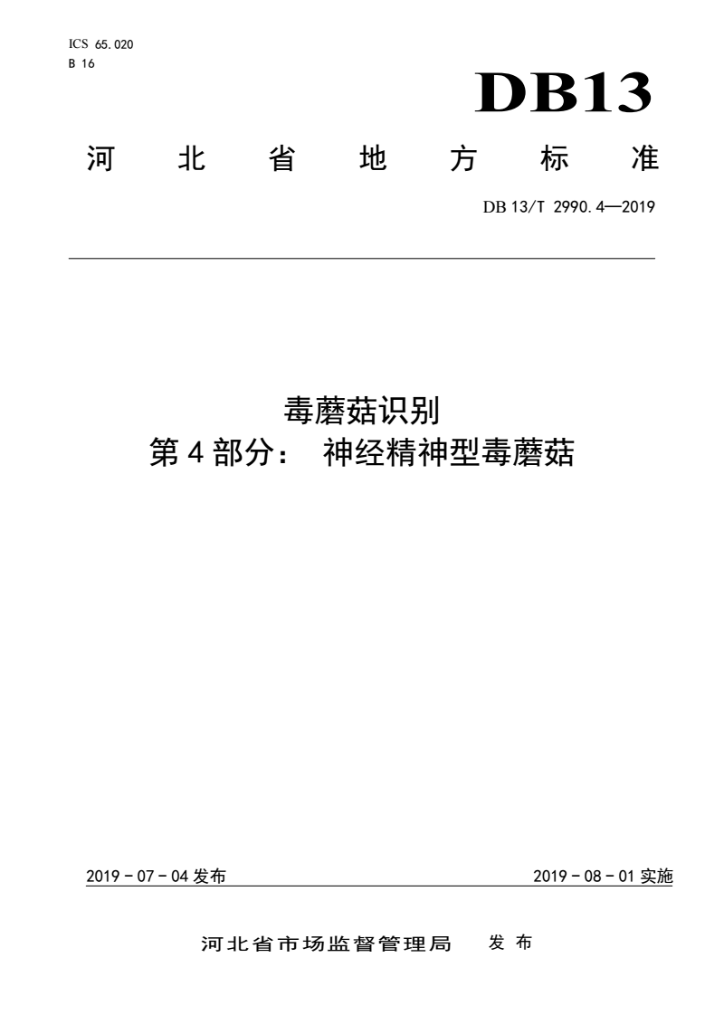 DB13/T 2990.4-2019 毒蘑菇识别 第4部分:神经精神型毒蘑菇 |