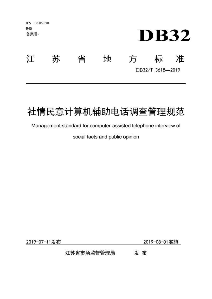 英文名称:Management standard for computer-assisted telephone interview of social facts and public opinion