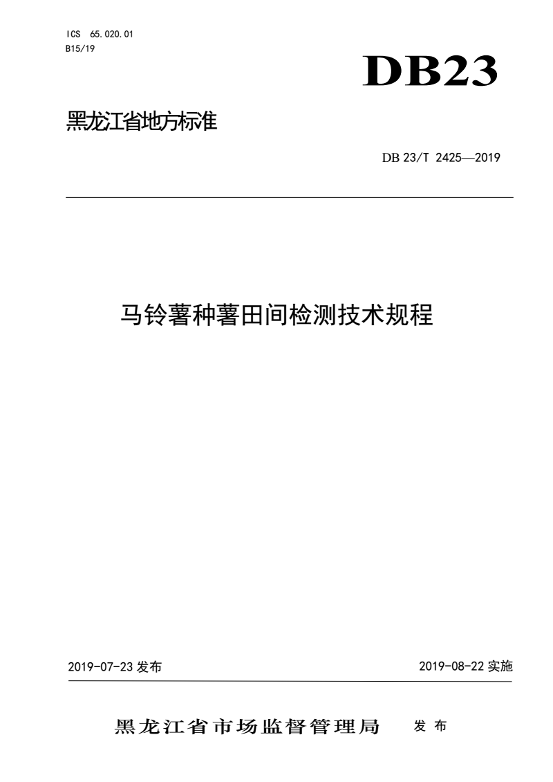DB23/T 2425-2019 马铃薯种薯田间检测技术规程 |