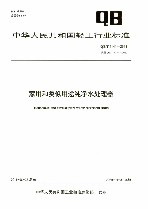 本标准适用于以市政自来水或其他集中式供水为原水,供家庭或类似场所使用的纯净水处理器,如反渗透净水器、纳滤净水器等。其他能产生饮用纯净水的处理器可参照本标准。