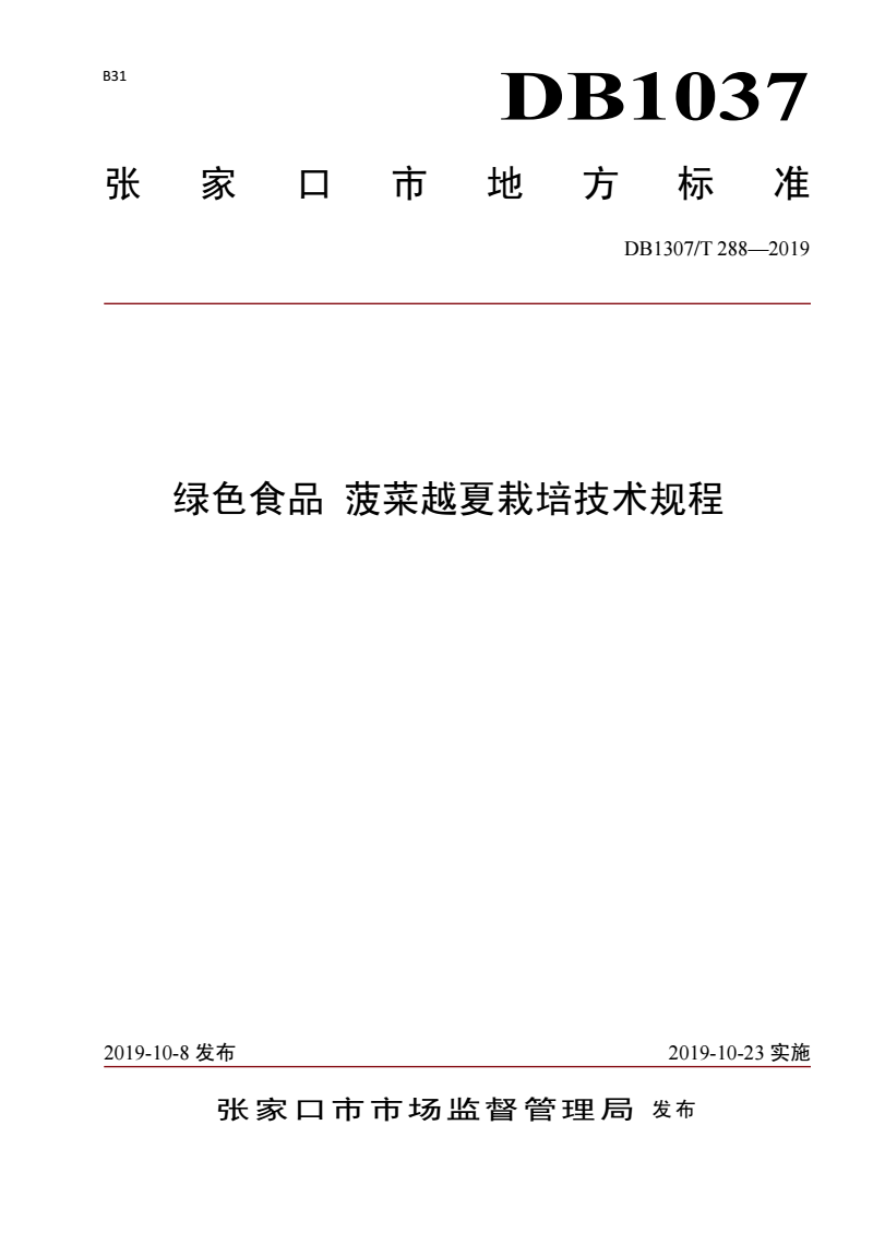 DB1307/T 288-2019 绿色食品 菠菜越夏栽培技术规程 |