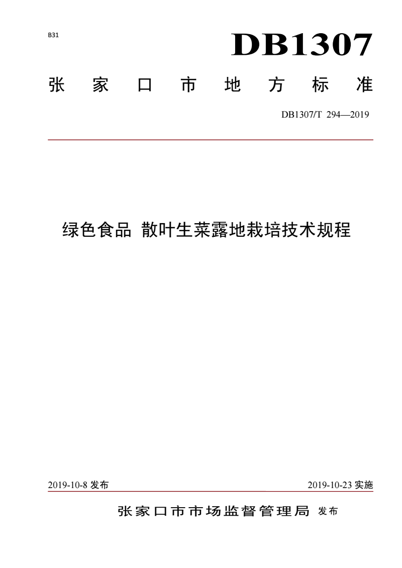 DB1307/T 294-2019 绿色食品 散叶生菜露地栽培技术规程 |