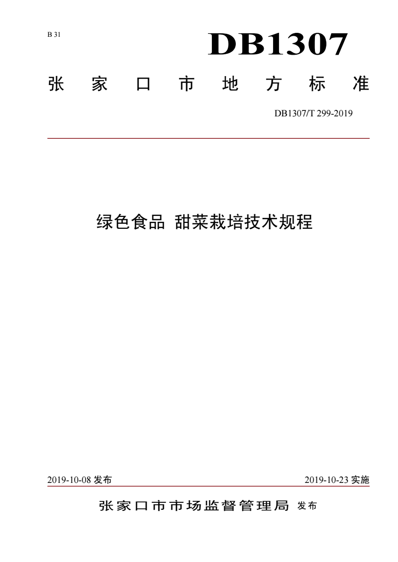 DB1307/T 299-2019 绿色食品 甜菜栽培技术规程 |
