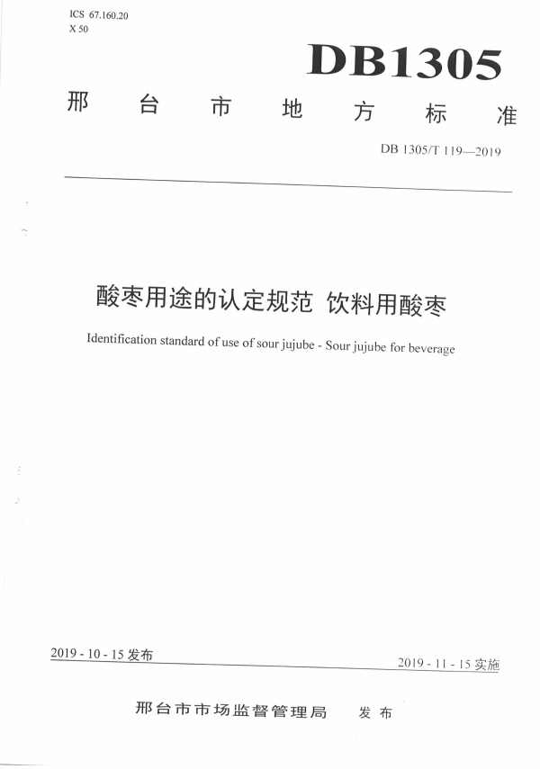 DB1305/T 119-2019 酸枣用途的认定规范 饮料用酸枣 |