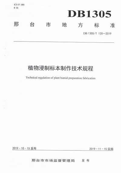 DB1305/T 120-2019 植物浸制标本制作技术规程 |
