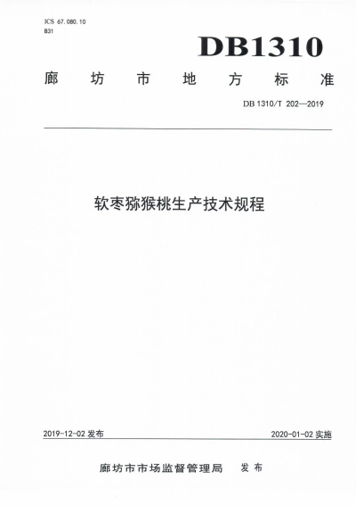 DB1310/T 202-2019 软枣猕猴桃生产技术规程 |