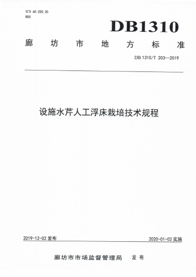 DB1310/T 203-2019 设施水芹人工浮床栽培技术规程 |