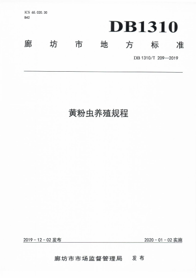DB1310/T 209-2019 黄粉虫养殖规程 |