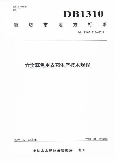 DB1310/T 212-2019 六瓣蒜免用农药生产技术规程 |