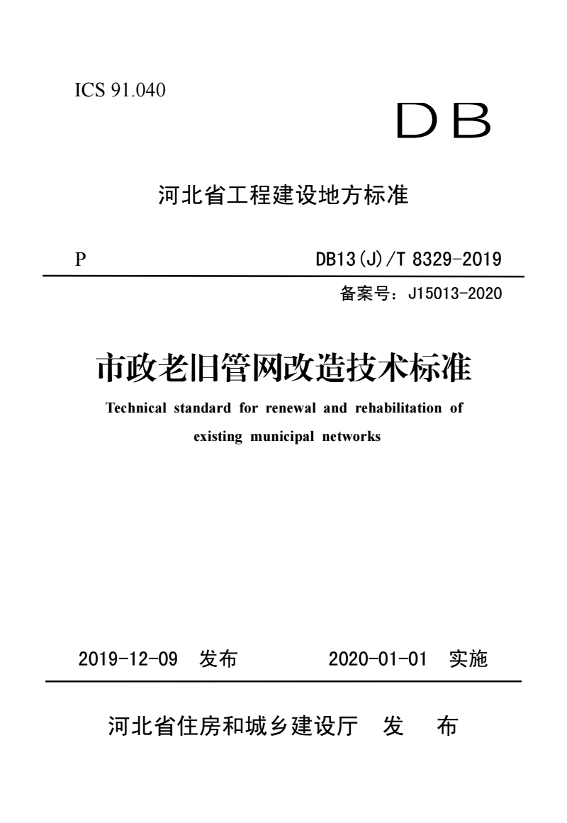 DB13(J)/T 8329-2019 市政老旧管网改造技术标准 |