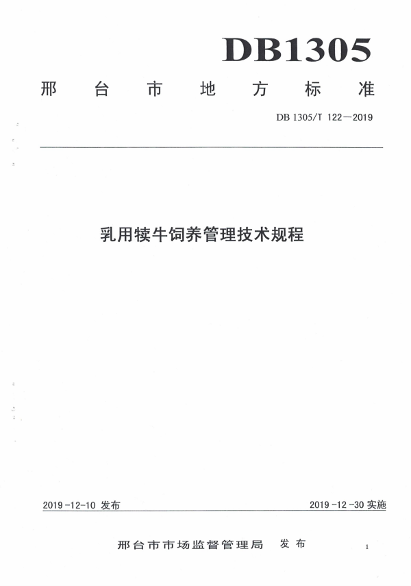 DB1305/T 122-2019 乳用犊牛饲料管理技术规程 |