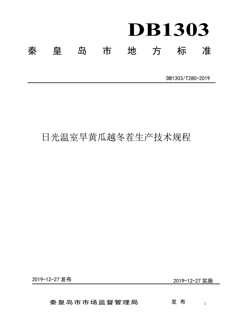 DB1303/T 280-2019 日光温室旱黄瓜越冬茬生产技术规程 |
