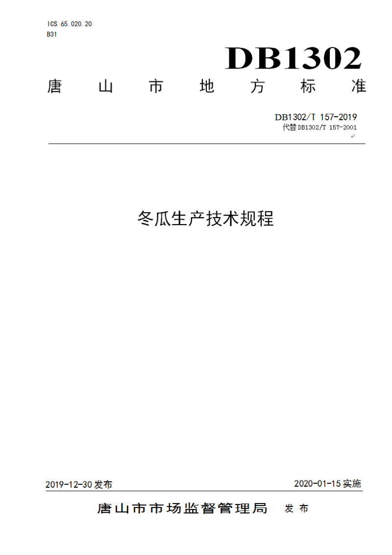 DB1302/T 157-2019 冬瓜生产技术规程 |