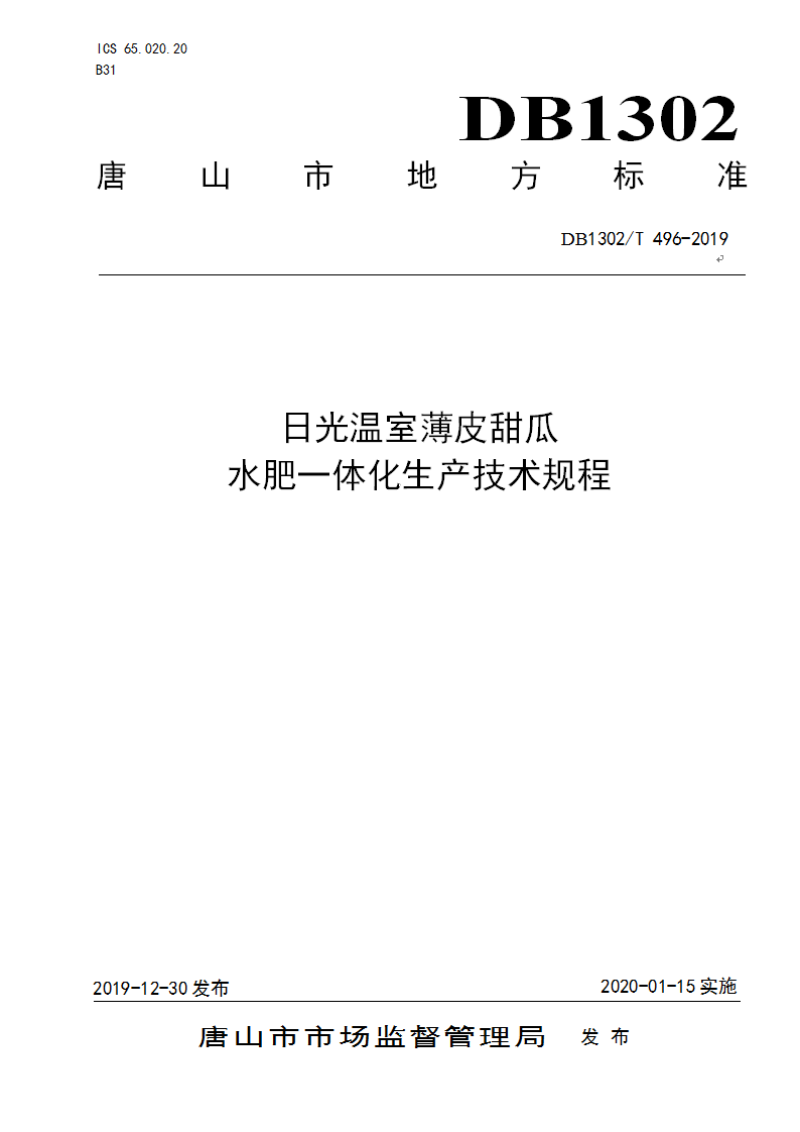 DB1302/T 496-2019 日光温室薄皮甜瓜水肥一体化生产技术规程 |