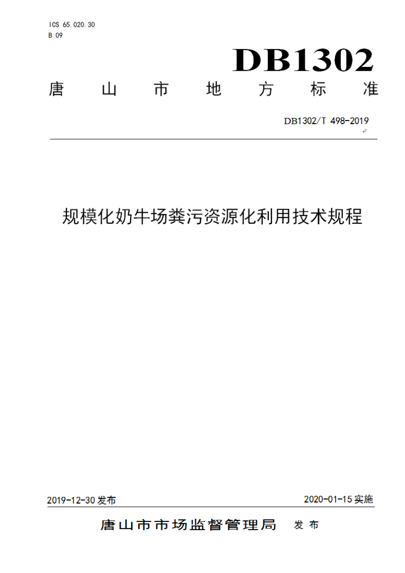DB1302/T 498-2019 规模化奶牛场粪污资源化利用技术规程 |