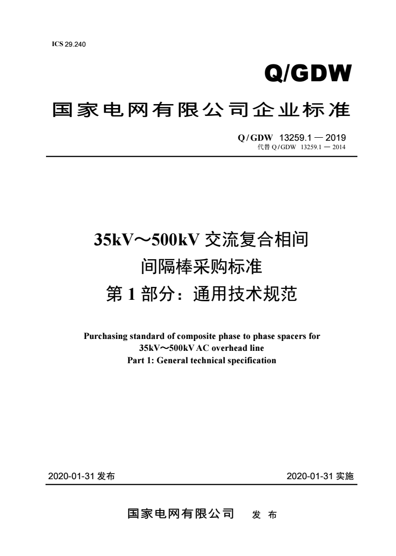 标准编号:Q/GDW 13259.1-2019