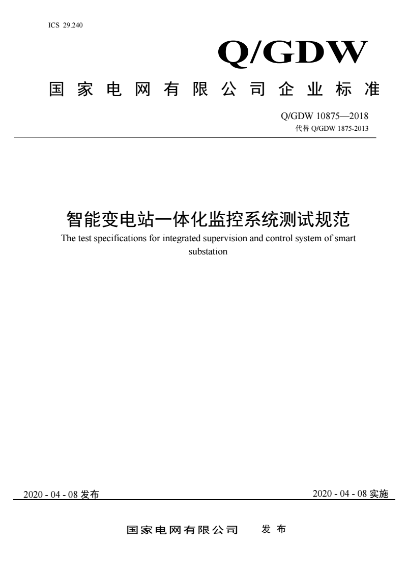 英文名称:The test specifications for integrated supervision and control system of smart substation