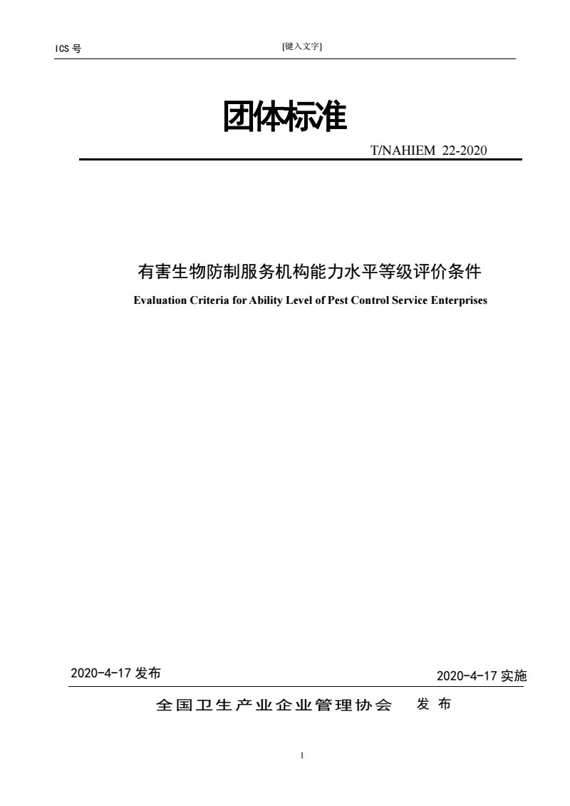 英文名称:Evaluation Criteria for Ability Level of Pest Control Service Enterprises