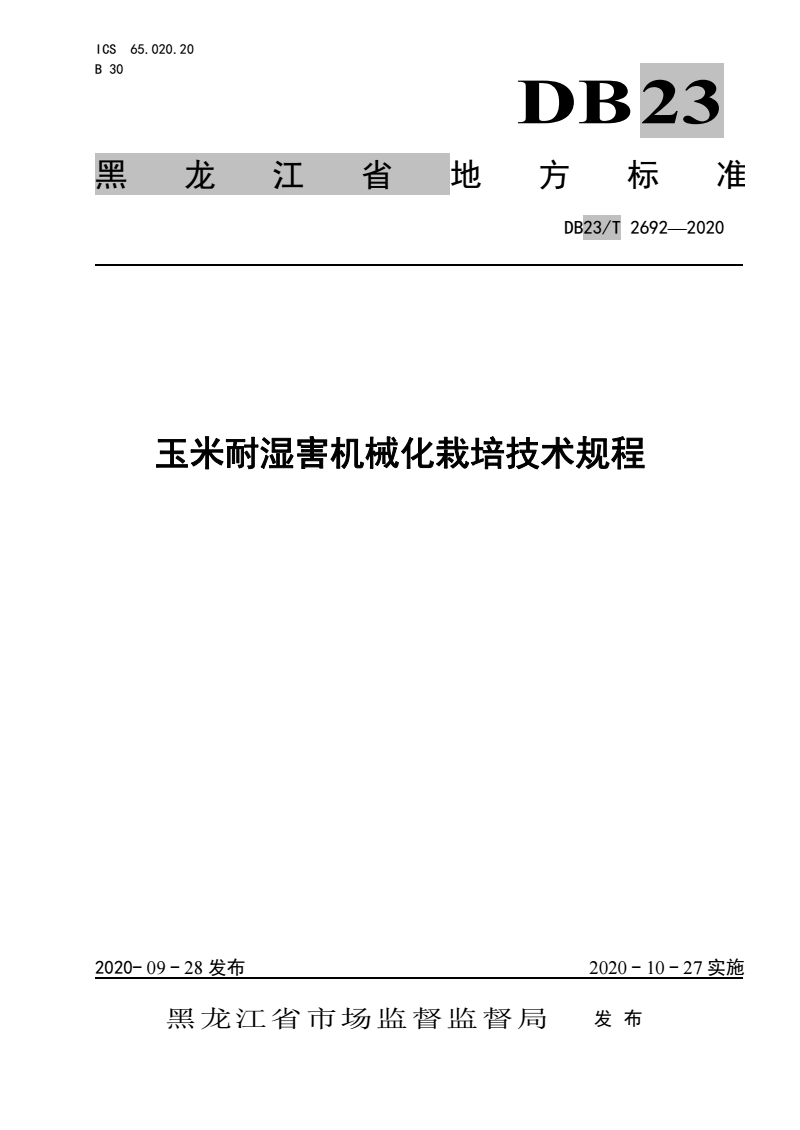 DB23/T 2692-2020 玉米耐湿害机械化栽培技术规程 |