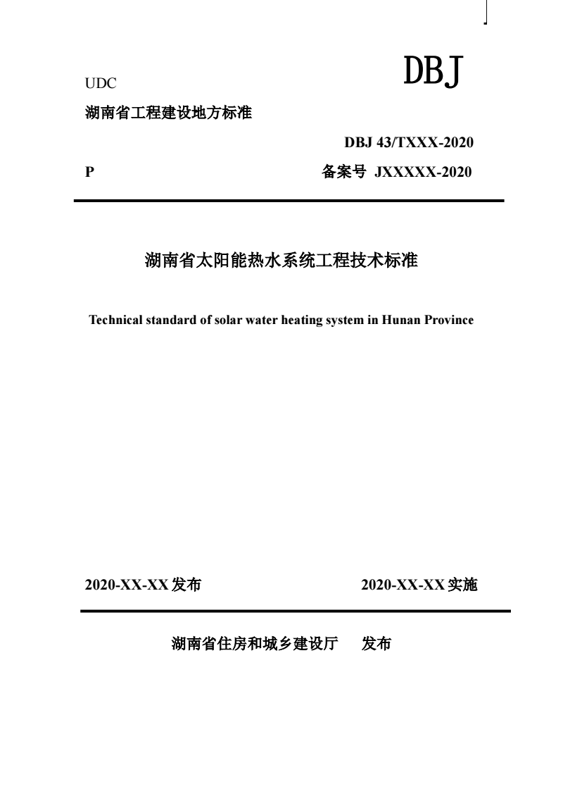 DBJ43/T 366-2020 湖南省太阳能热水系统工程技术标准 |
