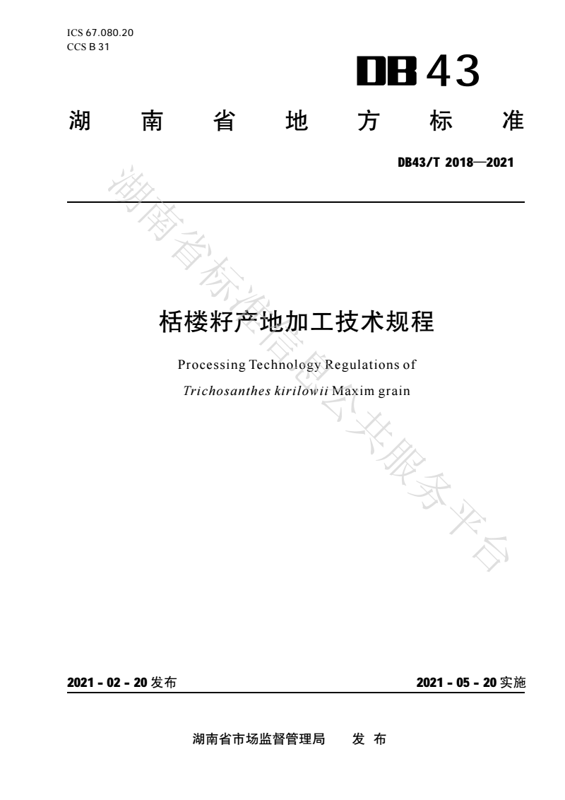 DB43/T 2018-2021 栝楼籽产地加工技术规程 |