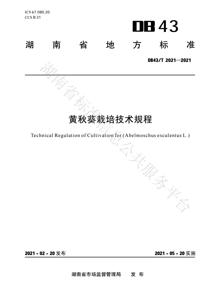 DB43/T 2021-2021 黄秋葵栽培技术规程 |