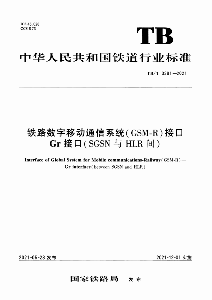 标准名称:铁路数字移动通信系统(GSM-R)接口Gr接口(SGSN 与HLR 间)