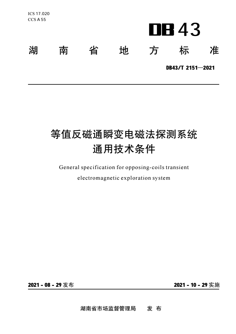 DB43/T 2151-2021 等值反磁通瞬变电磁法探测系统通用技术条件 |