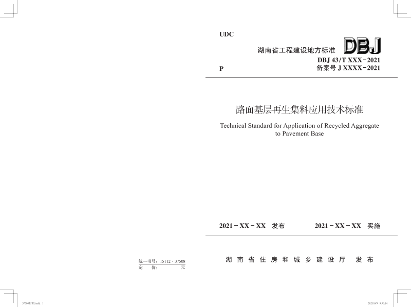 DBJ43/T 378-2021 路面基层再生集料应用技术标准 |