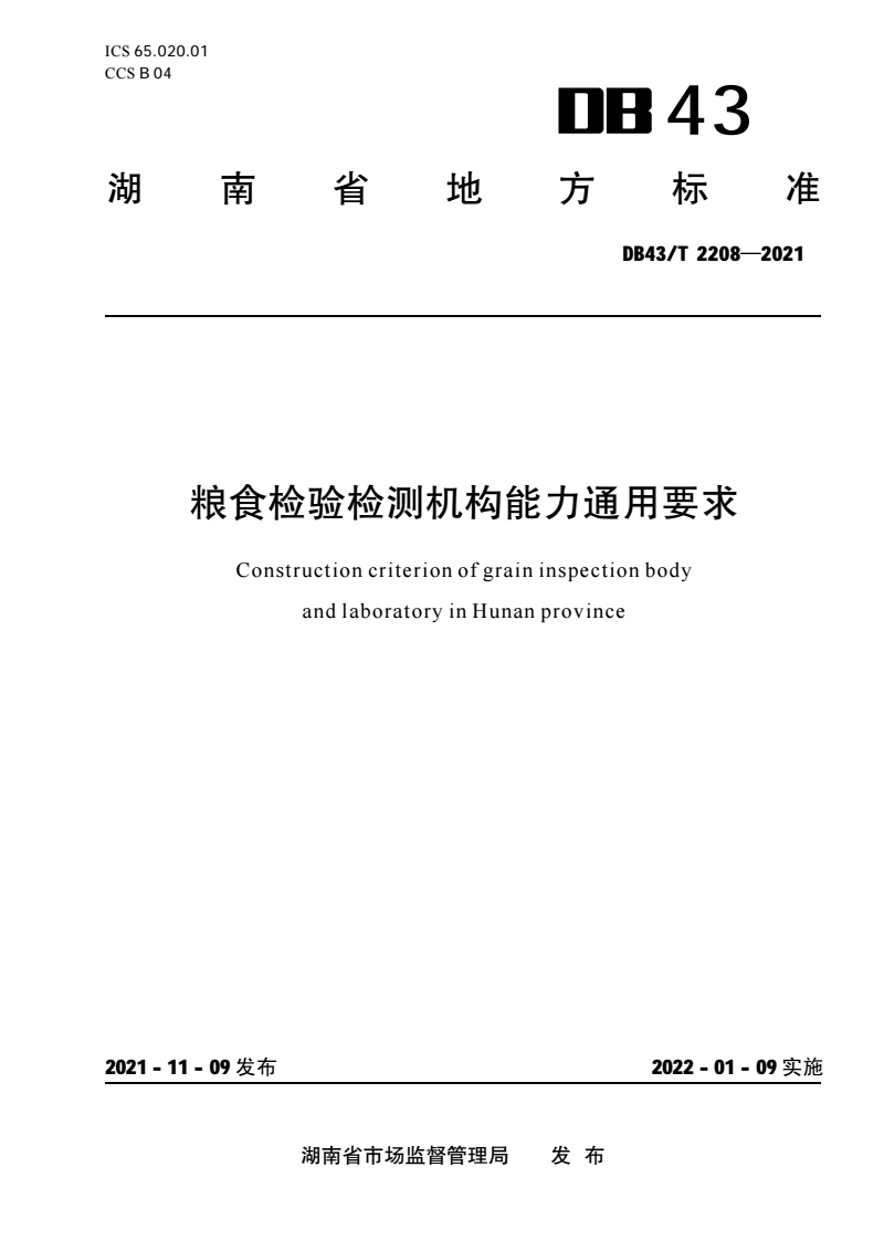 DB43/T 2208-2021 粮食检验检测机构能力通用要求 |