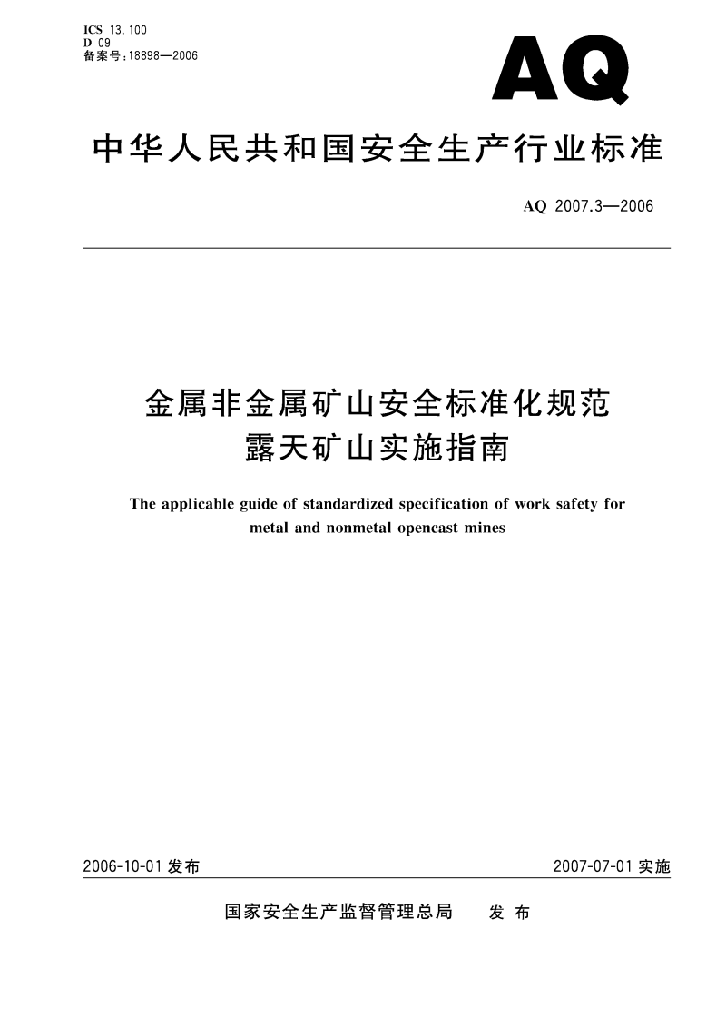 标准名称:金属非金属矿山安全标准化规范 露天矿山实施指南