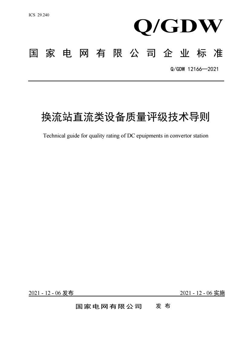 英文名称:Technical guide for quality rating of DC epuipments in convertor station