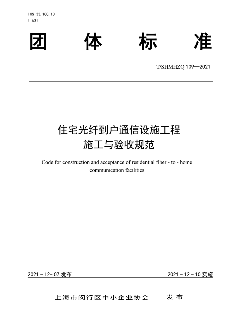 英文名称:Code for construction and acceptance of residential fiber - to - home communication facilities
