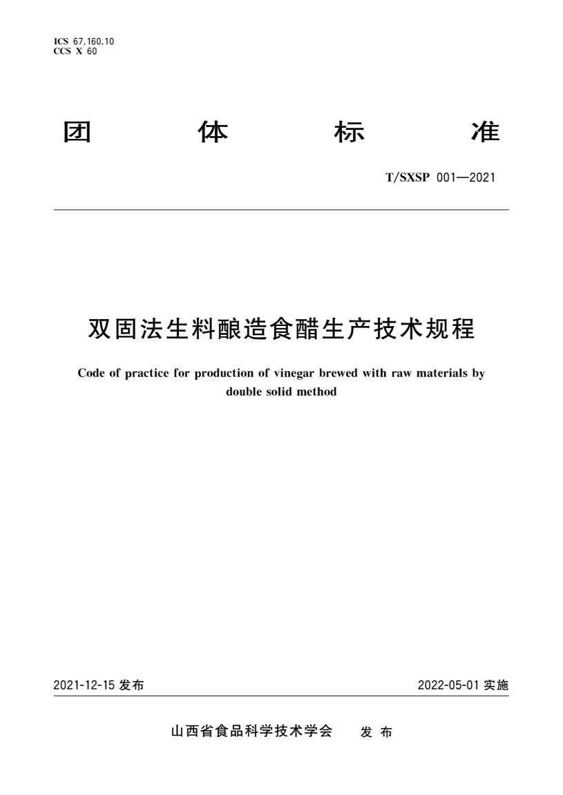 英文名称:Code of practice for production of vinegar brewed with raw materials by double solid method