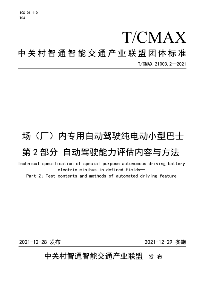 标准名称:场(厂)内专用自动驾驶纯电动小型巴士 第2部分 自动驾驶能力评估内容与方法