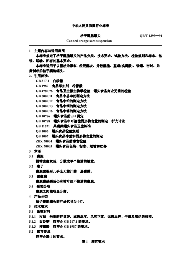 QB/T 1393-1991 桔子囊胞罐头 |