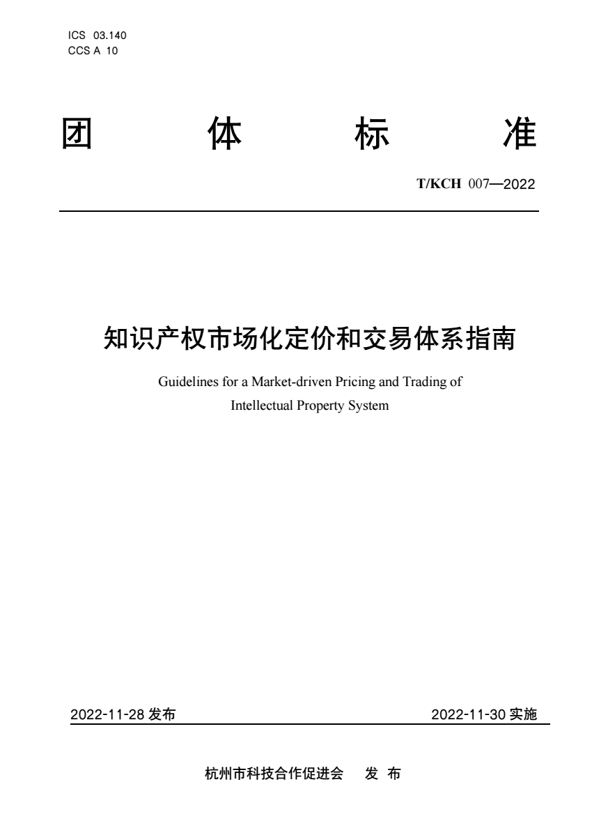 英文名称:Guidelines for a Market-driven Pricing and Trading of Intellectual Property System