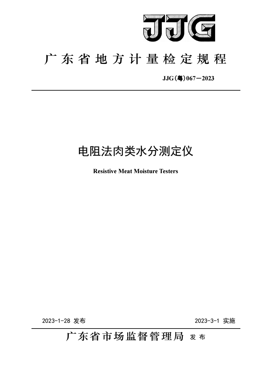 JJG(粤) 067-2023 电阻法肉类水分测定仪检定规程 |