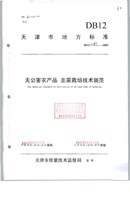 DB12/T 160-2003 无公害农产品 韭菜栽培技术规范 |