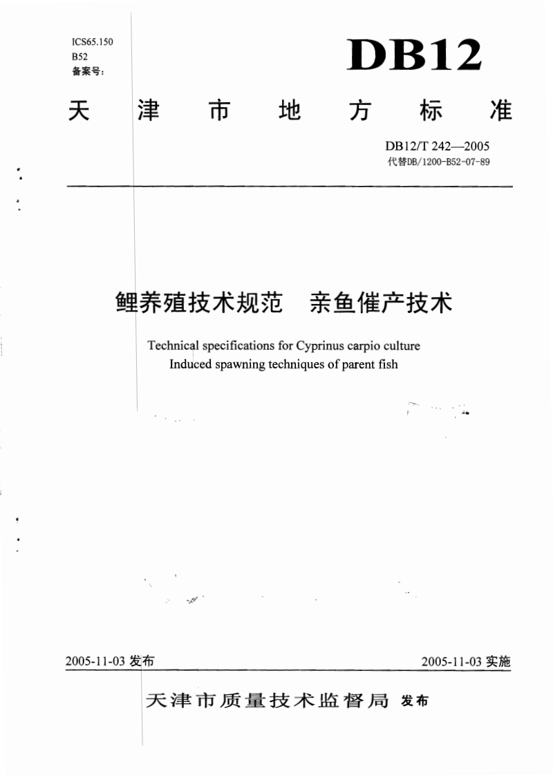 DB12/T 242-2005 鲤养殖技术规范 亲鱼催产技术 |