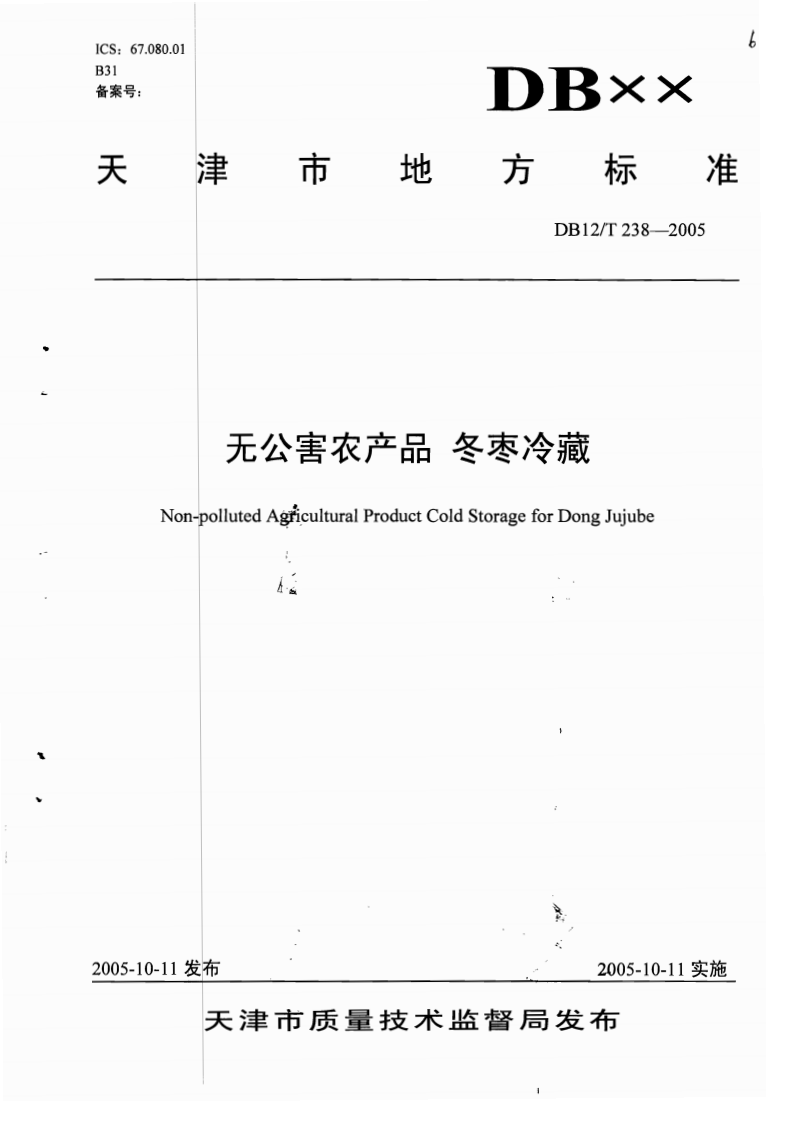 DB12/T 238-2005 无公害农产品 冬枣冷藏 |